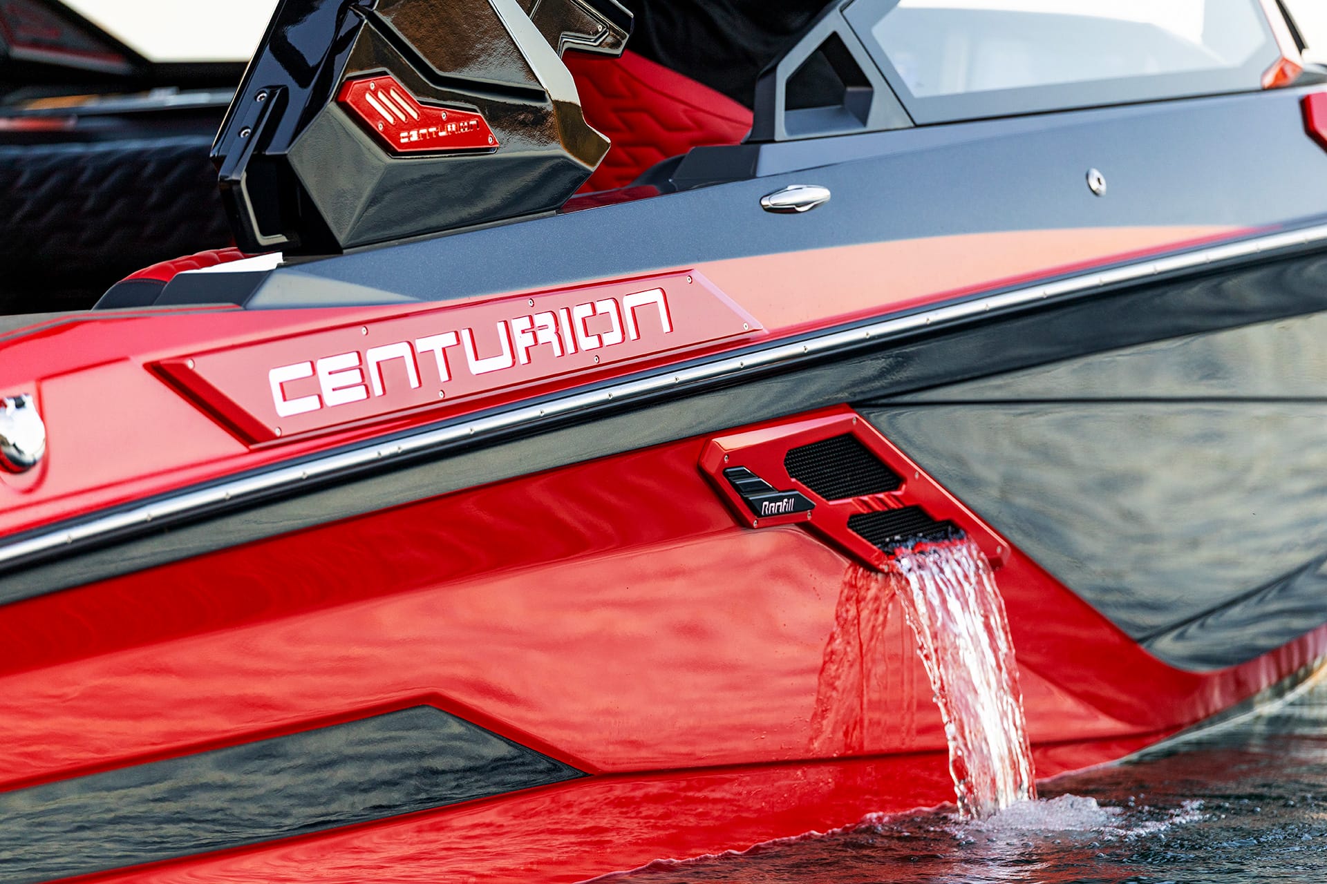 The result? A better experience for everyone onboard—driver, rider and all. The Ri230 delivers with up to seven precisely positioned ballast zones that work together to move 5,400 pounds of water. And for 2026, that weight moves faster than ever thanks to Centurion’s standard Fast Mover Ballast System by SeaFlow, which cuts fill times by more than 68%. Ri Series boats take it even further, with 30-gallon-per-minute Fast Mover pumps on rear bags and RAMFILL Boosted. Pair all that with a 23-foot hull built to perform and room for 14, and you’ve got a wave that keeps the stoke going from first light to last ride.